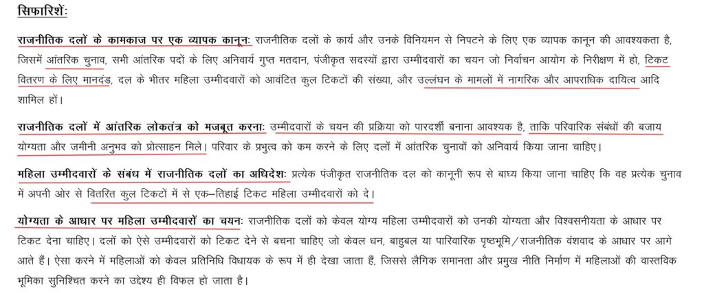 रिपोर्ट के आँकड़े बताते हैं कि वंशवाद केवल “सीटों की विरासत” तक सीमित नहीं है, बल्कि यह विभिन्न भौगोलिक क्षेत्रों, दलों और लिंगों में एक संरचनात्मक विशेषता है। महिलाओं और गैर-मान्यता प्राप्त दलों में वंशवाद की उच्च दर दर्शाती है कि वंशवादी राजनीति केवल विरासत संरक्षण का नहीं, बल्कि राजनीतिक प्रवेश और अस्तित्व का एक तंत्र है।